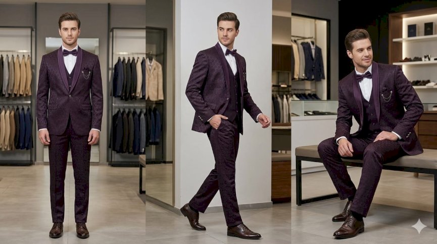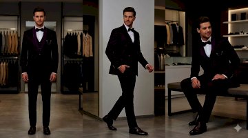 the image displays a computer monniter showing three diffrent poses of a male model in a retail environment.