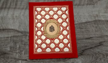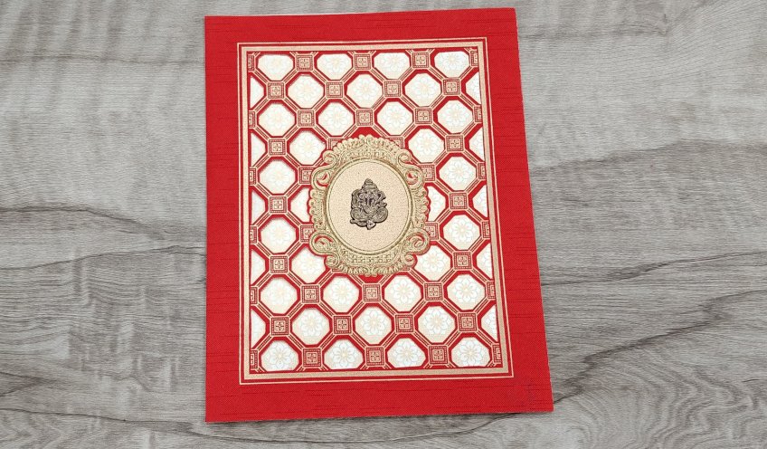This card is most likely intended for a Hindu wedding invitation or a similarly important traditional event, given the use of Lord Ganesha and the luxurious design.