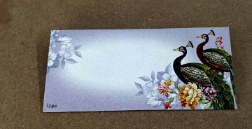 The image features a white rectangular object that resembles an envelope or card, with a bird depicted on its surface. The content of the image is minimalistic and emphasizes the drawing of the bird. This stationary item seems to convey a sense of elegance and simplicity.