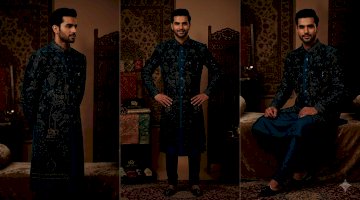 buy tail green embroidered jacketed indowesterns .