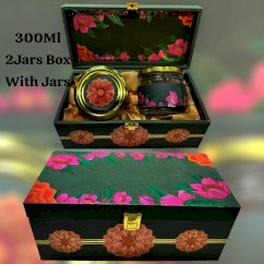 The image features a green box containing two jars, each with a capacity of 300ml.
