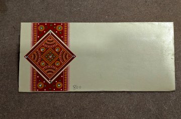 It is adorned with red and gold designs, adding a decorative touch to its appearance.
